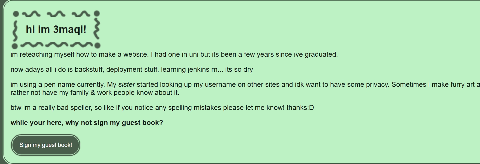 - moved the "sign my guestbook button" to my sidebar