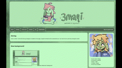 also a bit unrelated prehaps, but I think eventually I want to do a bit of an overhall with the layout of my front page, my navigation, and journal & devlog entries. Ill probably like brainstorm a view ideas. for one it would be nice to probably have a seperate page for journal and devlog updates so its a bit more easy to link to my rss reader. I also want to make an offical about the "webmaster" page. I think my homepage sorta is that right now, and it feel a bit cramped and not very planned (bc it was not planned LOL).