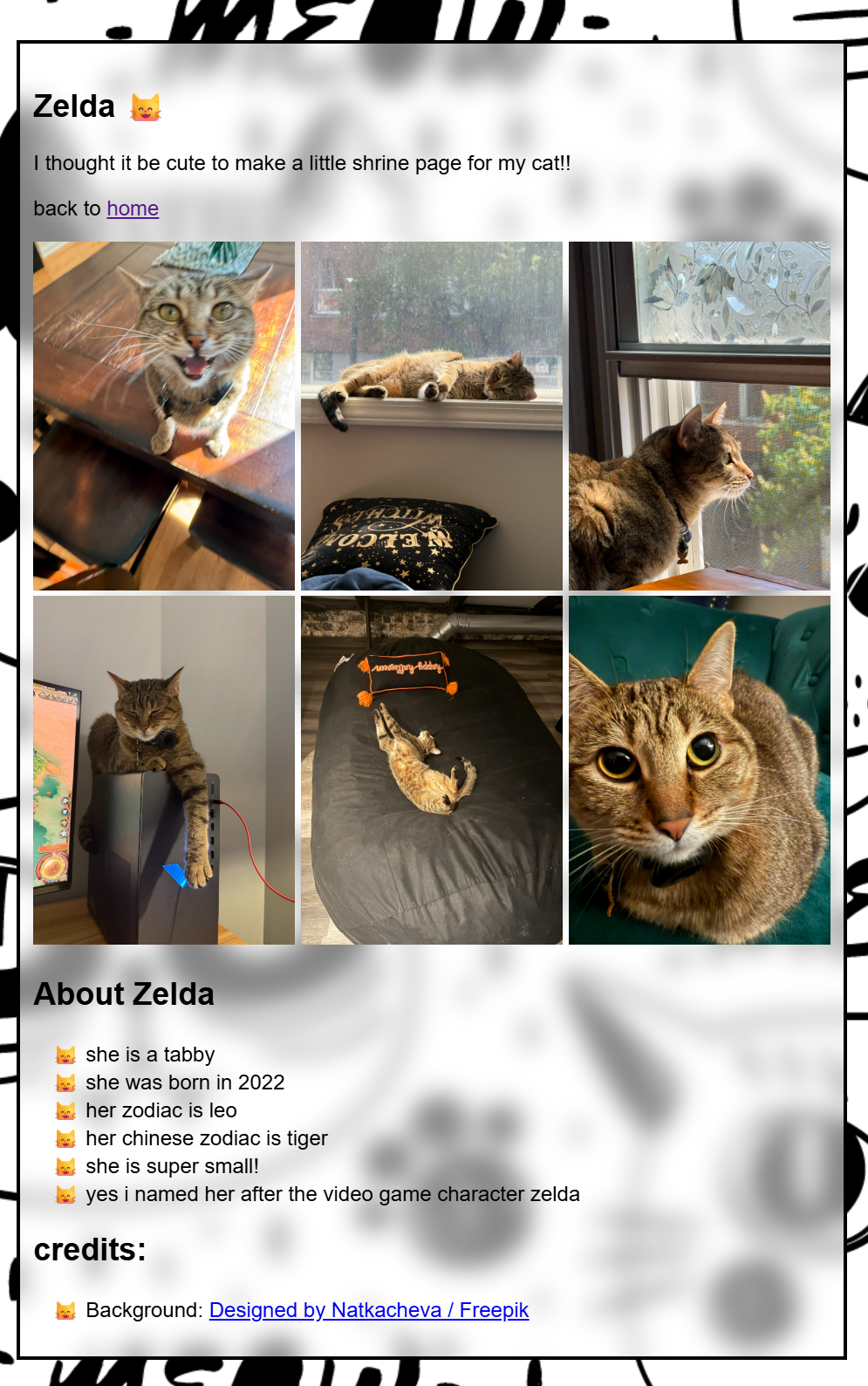 I thought it be cute to add a page for my cat zelda, and make a custom style and layout for it :D