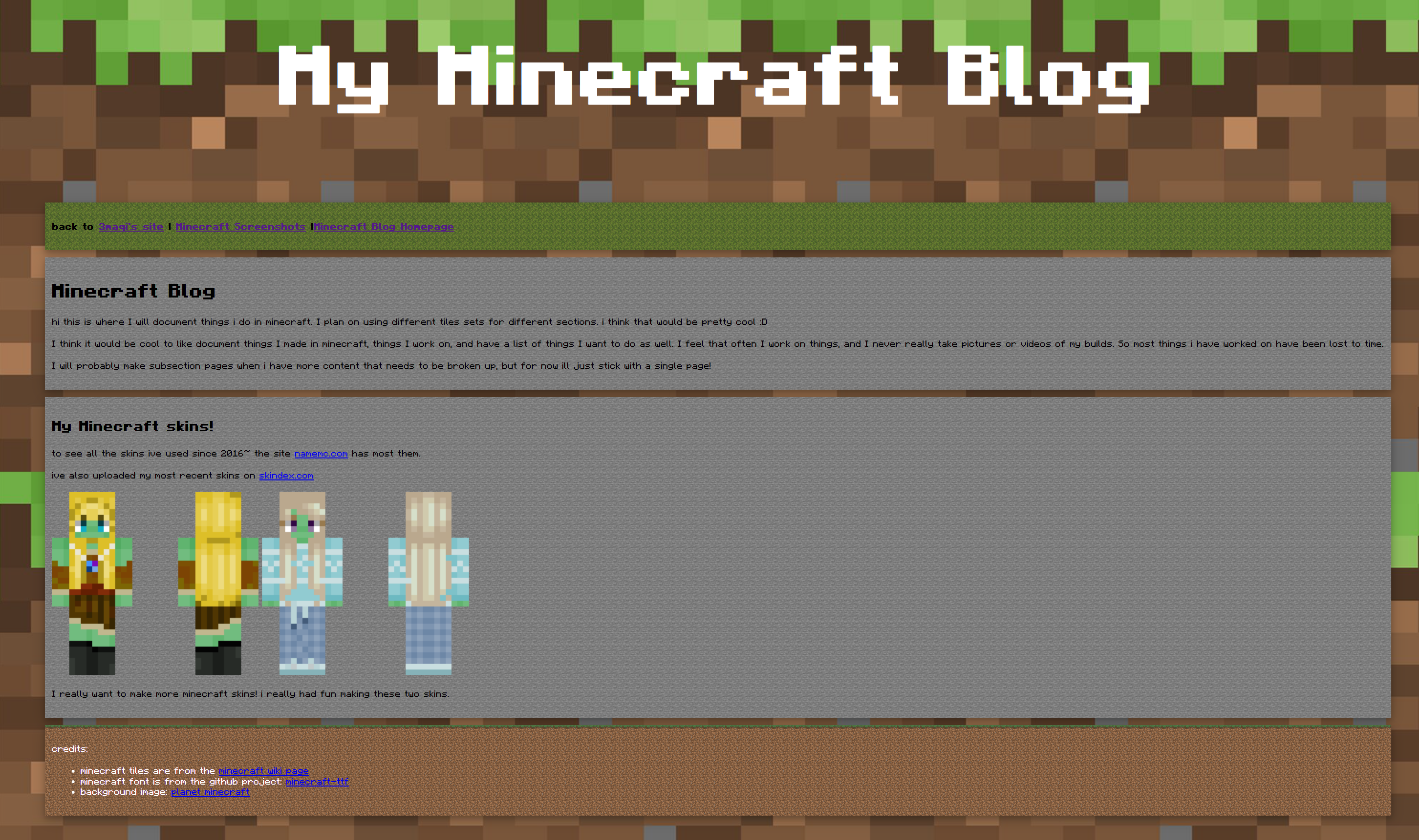 I have a blog just for things I do in minecraft! I thought it would be fun to make it themed with tile sets from the game.